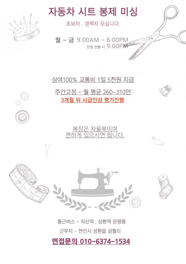 | ㆍ모집직종 | 미싱사 | 재단사 | 자수사 |